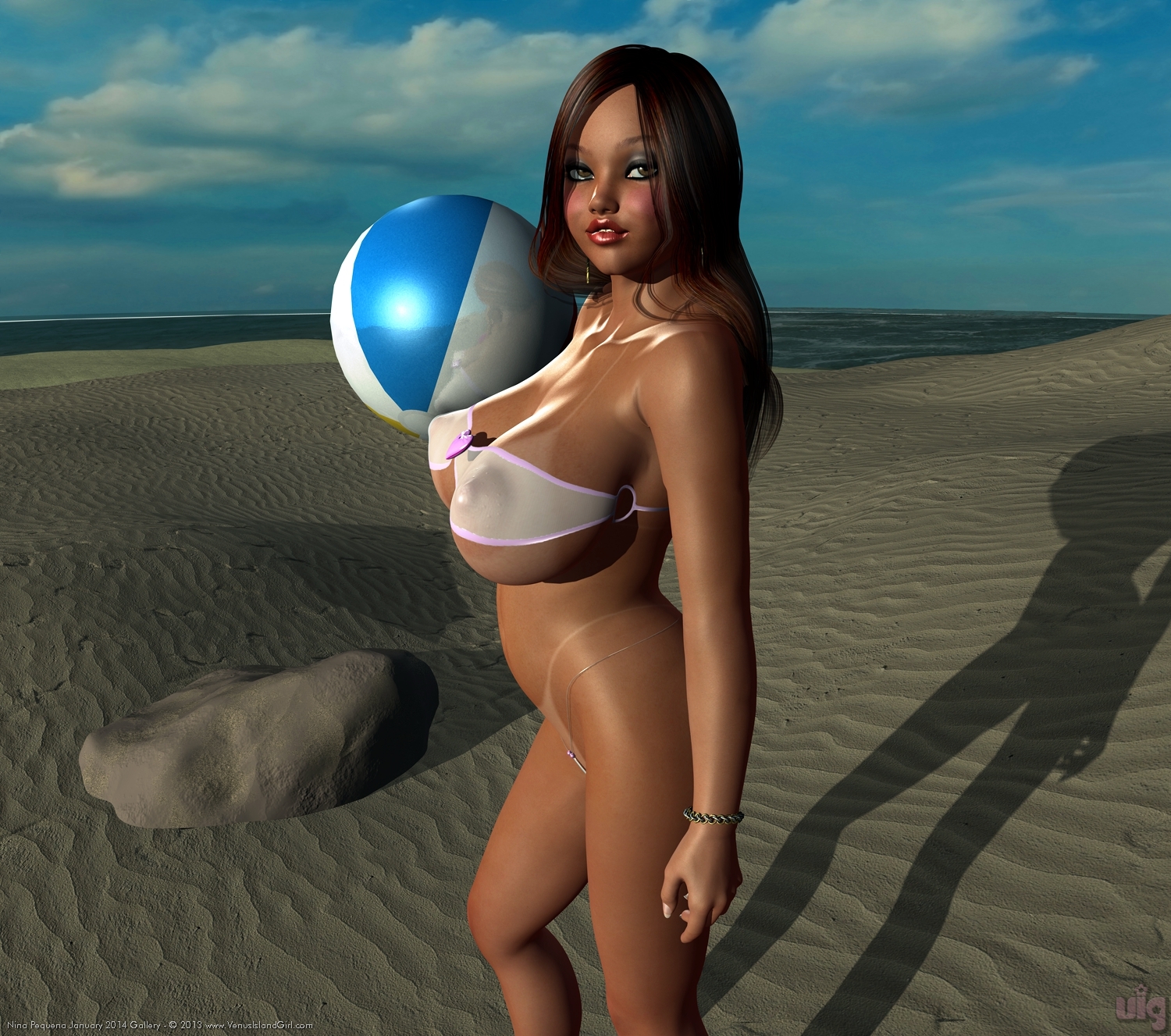 Nina's famous white strapless bikini... devastating and barely legal...