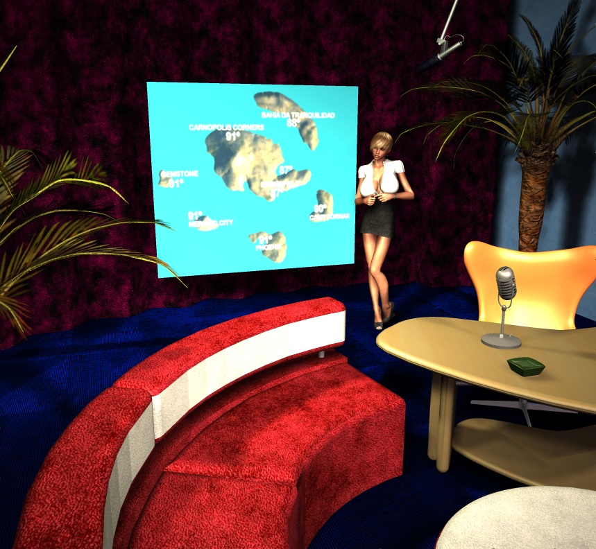 February 1985 Venus Island Girl meets Channel 13 Morning Weatherbabe Windi Welch.