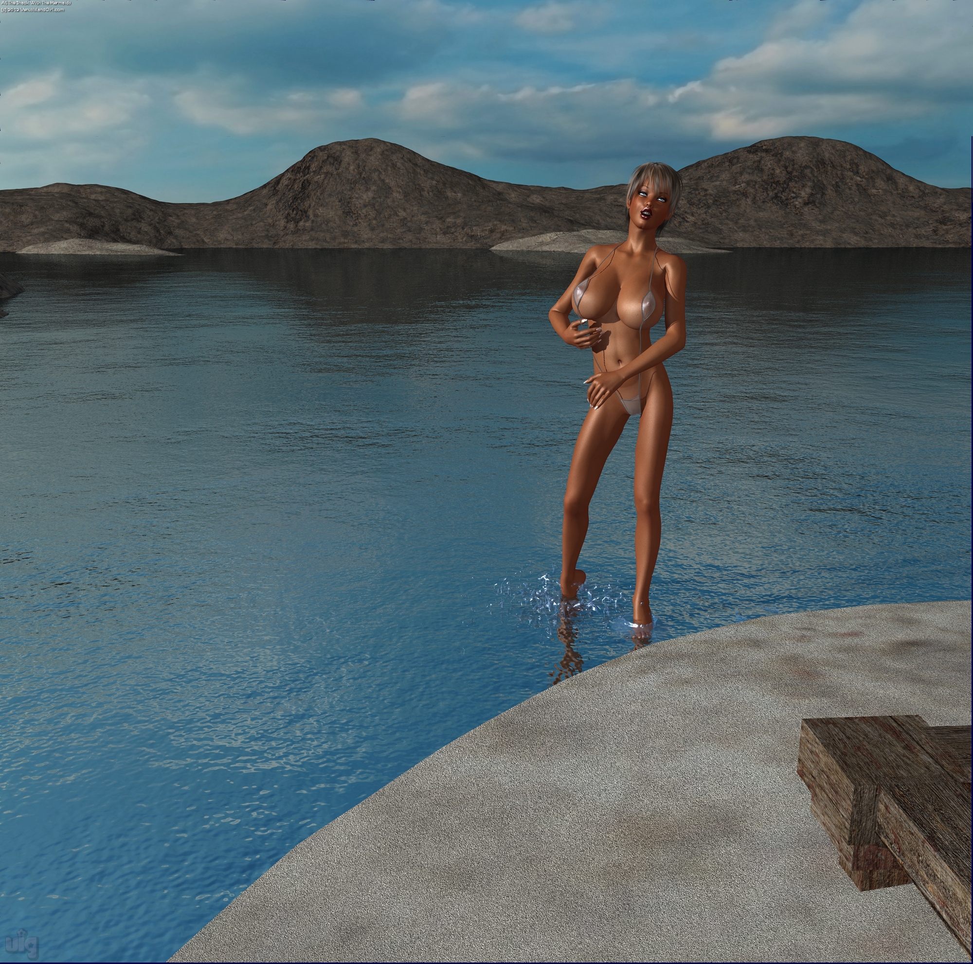 In this short (24 page) picture set, our photographer accompanies three of the team (Randi, Angel, and their captain Iris) to a remote little ramshackle shack in a secluded and fairly desolate cove in an area of Moon Island called Ombro Esquerdo, or The Right Shoulder. While there, a few more secrets were revealed, but those were not reported at the time. Instead, look forward to some of the happenings of that day (and night) to a forthcoming edition of "The Secret Life of Mermaids." For now, enjoy the visage of the three fantastic bodies posing in the afternoon sun in some of the tiniest swimsuits the world had ever seen (at least back in the 80's).